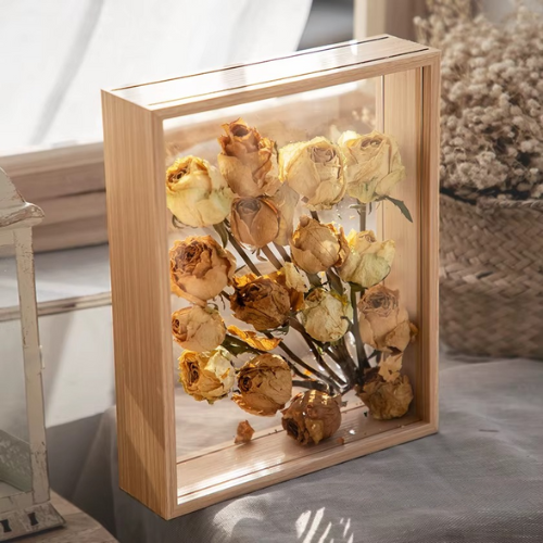 - Slide one plastic window back inside the frame to ease placing your items inside.